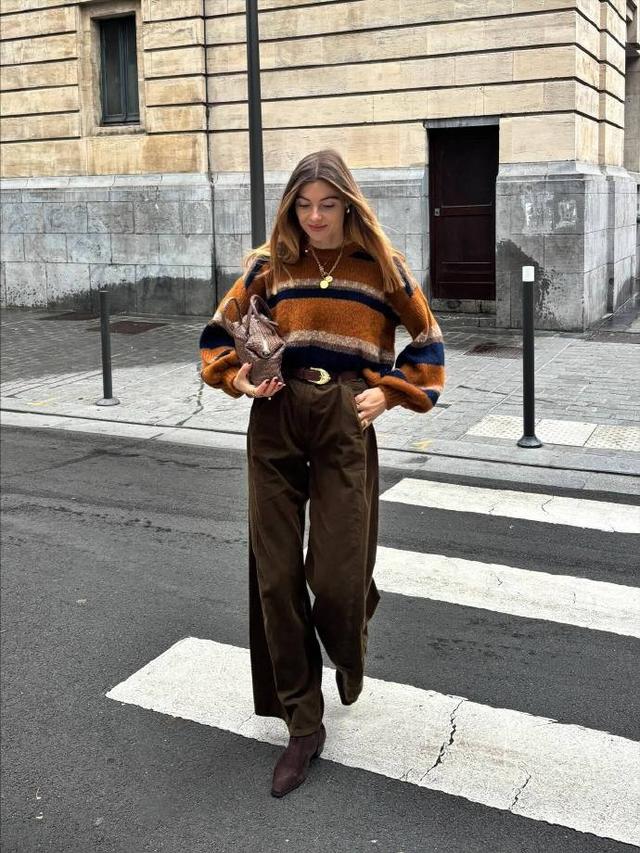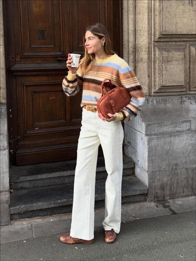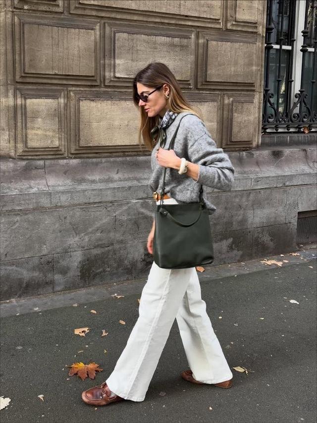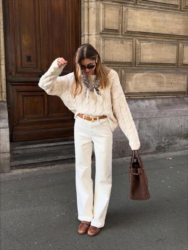 aga_bdk 的穿搭色彩向来以清新自然为主,她偏爱米白色、奶油杏、浅卡其这类温柔的大地色系,偶尔会加入一抹复古红、海军蓝作为点缀,瞬间提亮整体造型却又不会显得张扬。她很少选择高饱和度的撞色搭配,而是用同色系的深浅变化营造层次感,比如米白色针织衫搭配浅卡其阔腿裤,再踩一双棕色乐福鞋,整套 look 和谐又高级,哪怕是基础款的组合,也能在色彩的加持下透出满满的法式韵味。