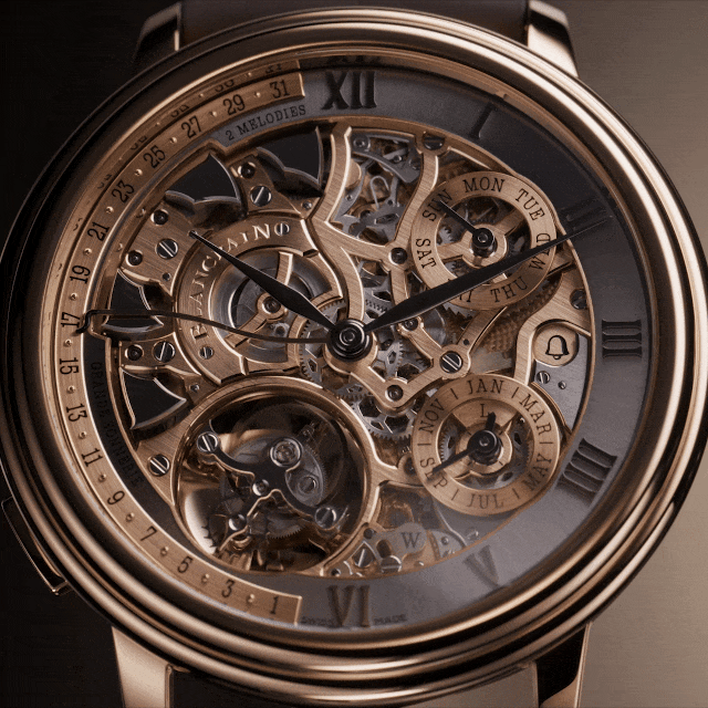 在“大音乐家”中,两段旋律并非两套彼此独立的报时系统,而是一套由导柱轮控制的机械双音轨系统。旋律的切换发生在同一套四音四锤架构之上,对系统的要求并不是增加复杂度,而是验证其稳定性边界。