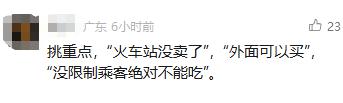 对此,广州东站回应称:原东站开行的普速列车已全部调整至广州站等其他车站,目前广州东站开行的均为动车组列车,根据国铁集团《铁路旅客运输服务质量规范》相关规定,方便面属于可能严重影响列车环境卫生的食品。为维护高铁车站和列车环境卫生,使广大旅客享受到更为优质的服务,高铁车站内均不售卖方便面食品,但旅客可自行携带。不便之处,敬请谅解!